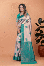 Dusty Banarasi Silk Saree with Rama Zari Border