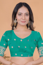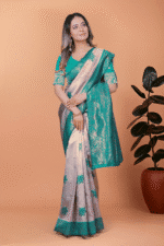 Be the first to review “Dusty Banarasi Silk Saree with Rama Zari Border”