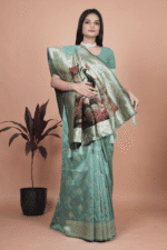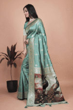 Be the first to review “Green Banarasi Silk Saree with Digital Peacock Print & Jacquard Weave” Cancel reply