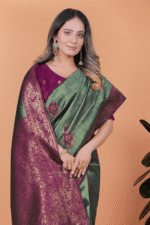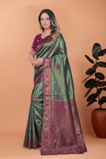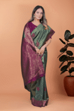 Be the first to review “Green Banarasi Silk Saree with Rama Zari Border” Cancel reply