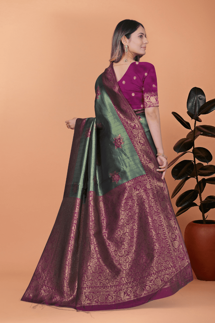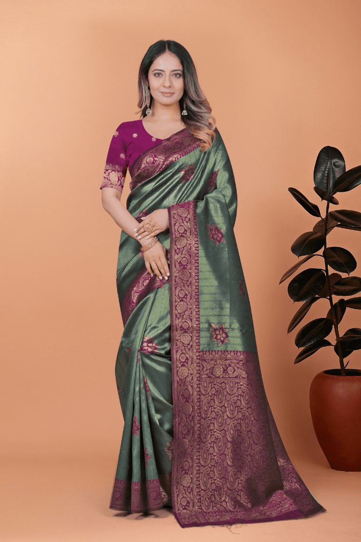 Green Banarasi Silk Saree with Rama Zari Border
