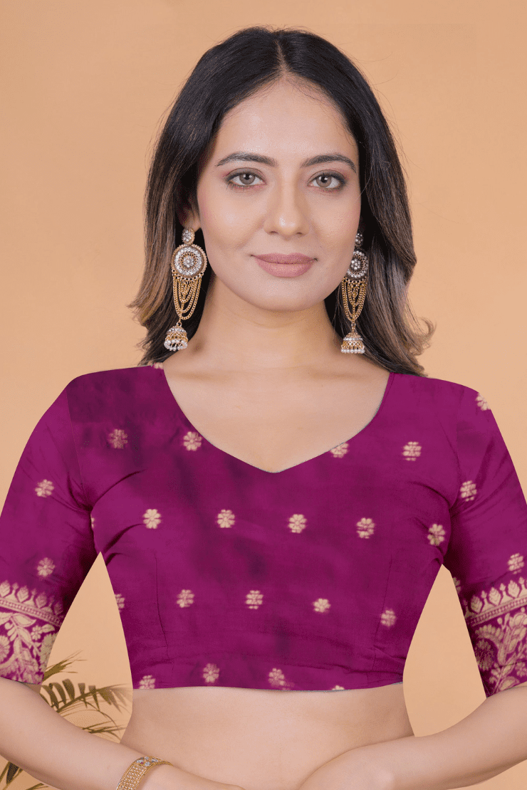 Ready to wear chinon saree with embroidery work blouse Plazzo (Magenta)