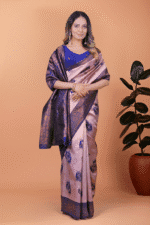 Be the first to review “Peach Jacquard Silk Saree With Blue Elegent Woven Border” Cancel reply