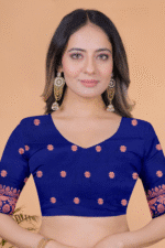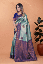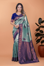 Be the first to review “Peacock Blue Banarasi Silk Saree with Navi Blue Zari Border”