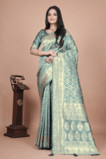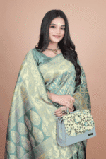 Be the first to review “Trendy Fab Green Handloom Banarsi Silk Saree With Heavy Zari Border”
