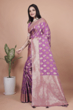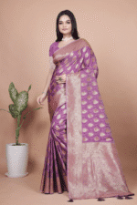 Lavender-Pink Banarasi Silk Saree with Navy Blue Zari Border
