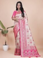 Trendy Fab Meenakari Banarasi Silk Saree With Light Pink Contrast Minakari Border Pallu