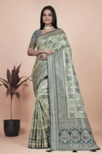 New Peacock Zari Woven Banarsi Silk Saree Light Green With Rich Pallu