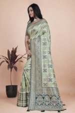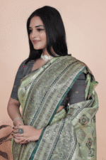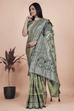 Trendy Fab Green Handloom Banarsi Silk Saree With Heavy Zari Border